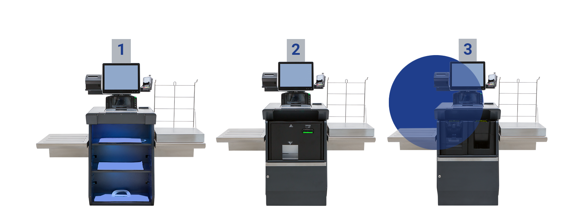 Im Auftrag einer internationalen Retailkette wurden in enger Abstimmung zwischen dem Kunden und der internen Format R & D Abteilung diese modulare Self Checkout Systeme entwickelt. Ziel war es, ein System zu etablieren, mit dem flexibel auf sich änderndes Bezahlverhalten reagiert werden kann – individuell anpassbar durch nachträglich Umrüstung der Komponenten vor Ort.