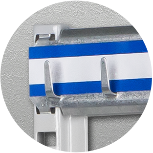 - Hakenleisten im Raster von 14 mm höhenverstellbar